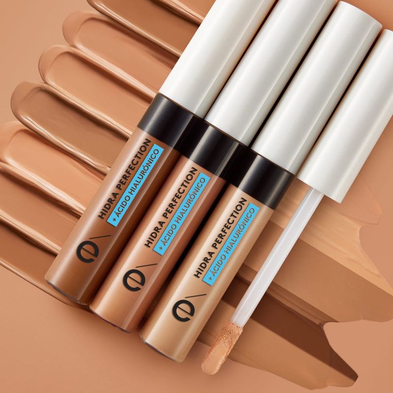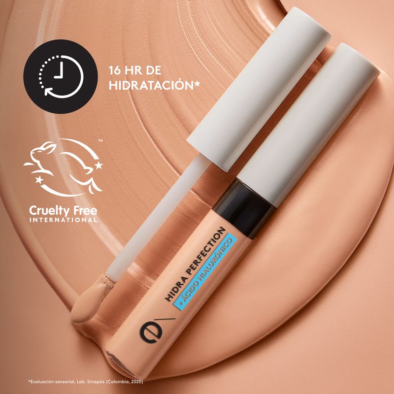 Corrector de alta cobetura con 24H de duración y ácido hialurónico.